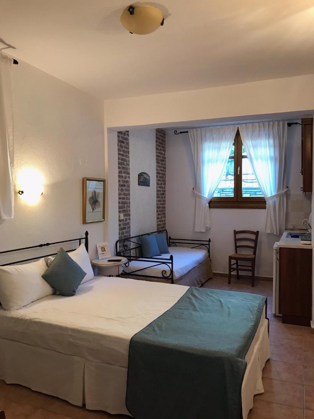 Double or Twin Room. Air-conditioned rooms with free Wi-Fi and a balcony overlooking the gulf of Agion Oros. Features a TV, a fridge and coffee maker. Each comes with free toiletries and a hairdryer.