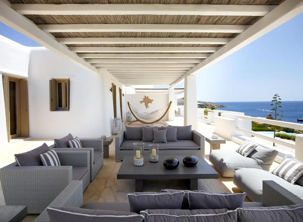 Set in Mýkonos City, Villa Solaria offers a terrace with sea and pool views, as well as a seasonal outdoor pool, sauna and hot tub. This property offers access to a balcony and free private parking. The property is non-smoking and is located 3 km from Ftelia Beach.