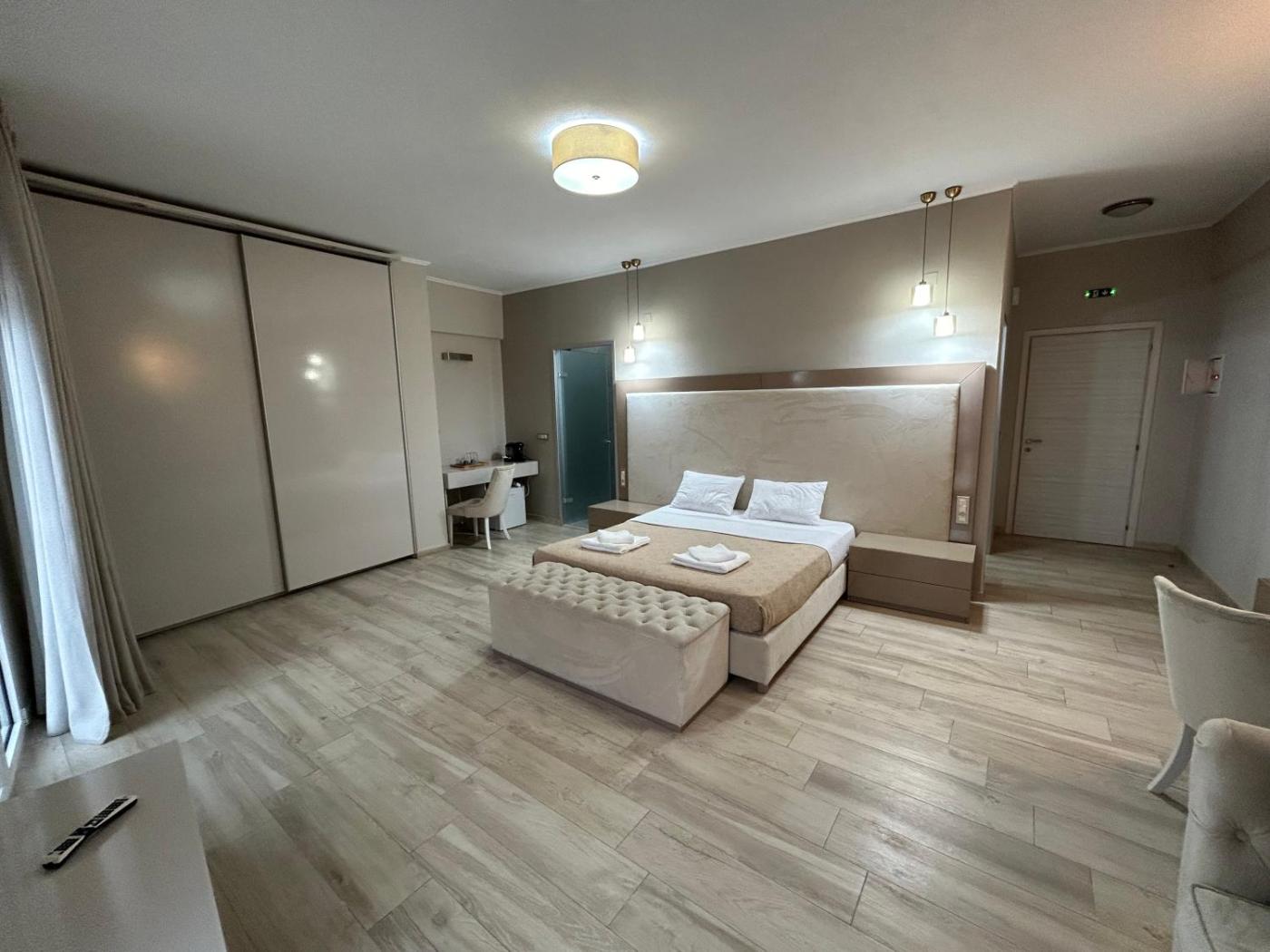 Deluxe Double Room with Balcony and Sea View. The spacious double room features air conditioning, a private entrance, a terrace with garden views as well as a private bathroom boasting a bath. The unit has 2 beds. ;